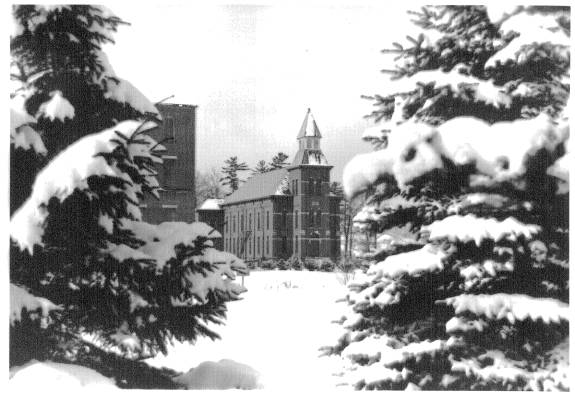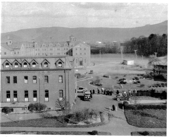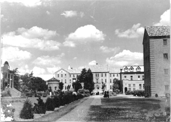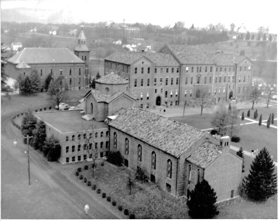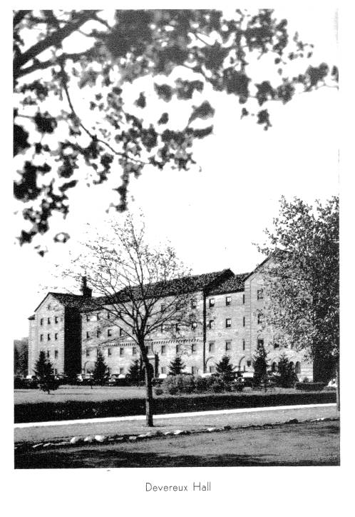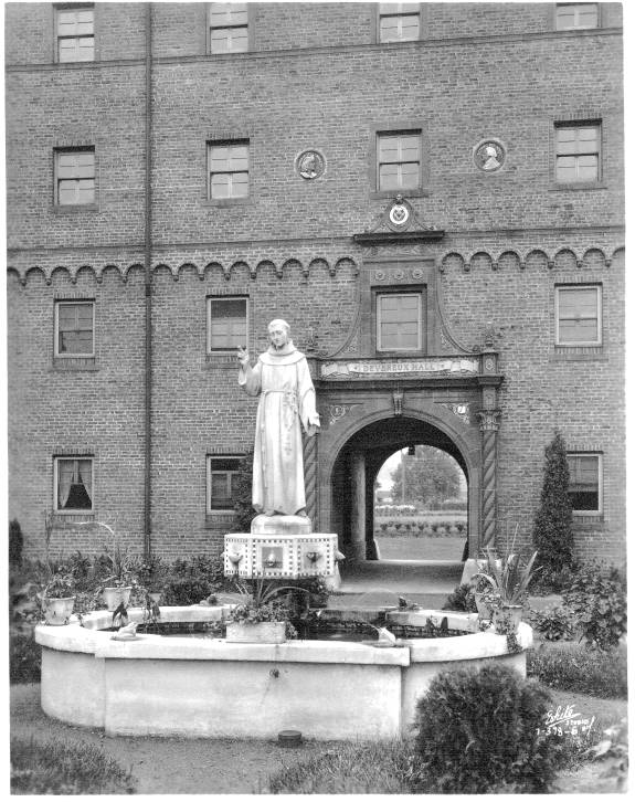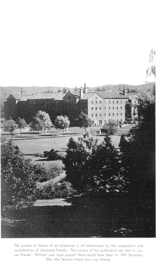 In 1940 the campus of St. Bonaventure (then known as St. Bonaventure College) consisted of six major buildings. To the west was Devereux Hall, which served as both dormitory and Franciscan friary. There was also a chapel attached to the west wing whose entrance faced the inside court. Next to this was Butler Gymnasium that housed not only the gym but also had office areas for athletics and various student groups. On the south side of Hickey Dining Hall there was a convent for the sisters who ran the food service.