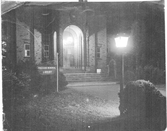 Friedsam Library was the newest building on campus. The president's office overlooked the library's main reading room. The basement of the Library had a number of separate study rooms containing various subject collections. East of the Library was De la Roche Hall which was the classroom building but which also housed the bookstore and post office. At the east end of campus was Alumni Hall which contained recreation rooms and a large auditorium where films were often shown.