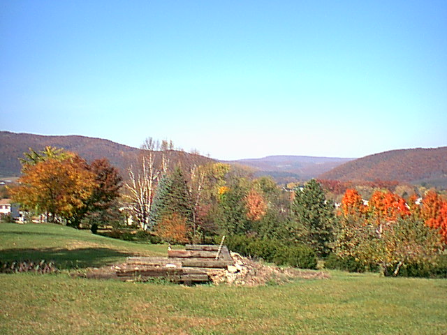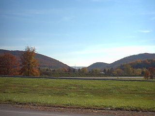 Tarr Hostigos. Tarr Hostigos guards Hostigos Gap, in the right center of this picture. The structure itself would be on the rise to the right, the east side, overlooking Hostigos Town (Bellefonte) in the valley below. The gap is one of many mentioned in the book which cut through the Mountains of Hostigos (Bald Eagle Mountains). One can see the Listra River Valley looking north through the gap. |