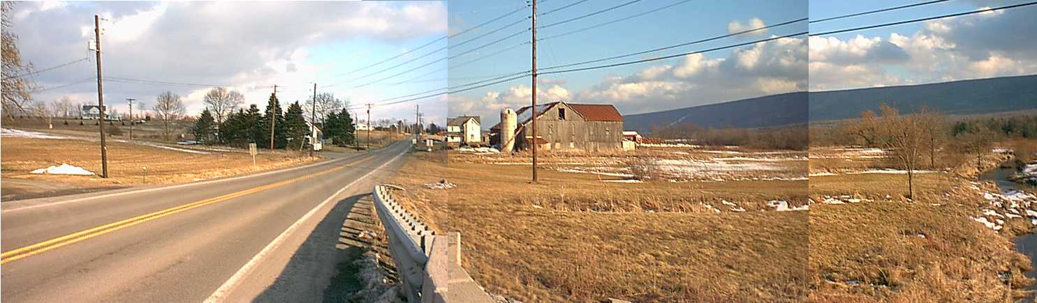 First we look from just in front of the Hostigi lines on the east edge of Fitra (Elimsport) up the road toward Systros. The location is on a bridge over the small brook Kalvan mentions in his description. The rise in front and to the left is the one the Nostori cavalry road over to suddenly find themselves advancing in the face of unexpectedly heavy fire. To the right, beyond the barn and line of trees, is the valley where Kalvan hid his cavalry for an attack on the flank and rear of the confused Nostori troops. |