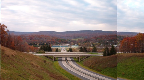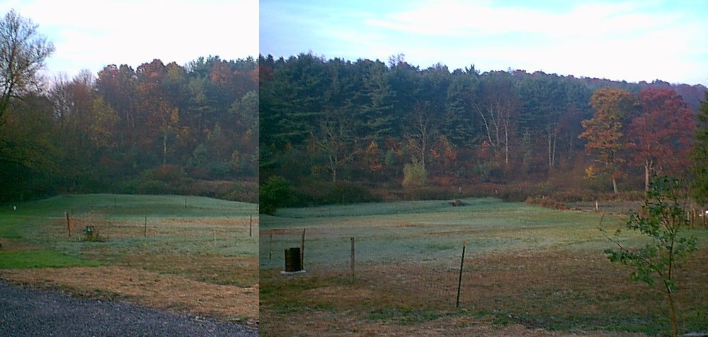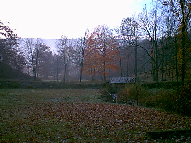 Fyk (Grazierville) is to the right behind the colorful grove of trees. Fry creek flows through the valley between the hills. It's my view that some of Piper's naming took inspiration from the local features, thus Fry/Fyk, Dick's/Darax. This was a hint I took for locating this site. |
