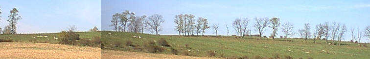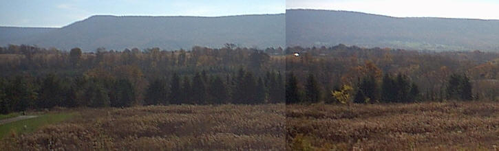 current topographic maps. This is a shot of an Amish farm in the heart of Sinking Valley. They don't show up well here, but the dark objects in line in the right center are sheaves of grain, not dissimilar, I suspect, to those one might see on a Zarthani farm in the same fields, plowed by similar horses. |